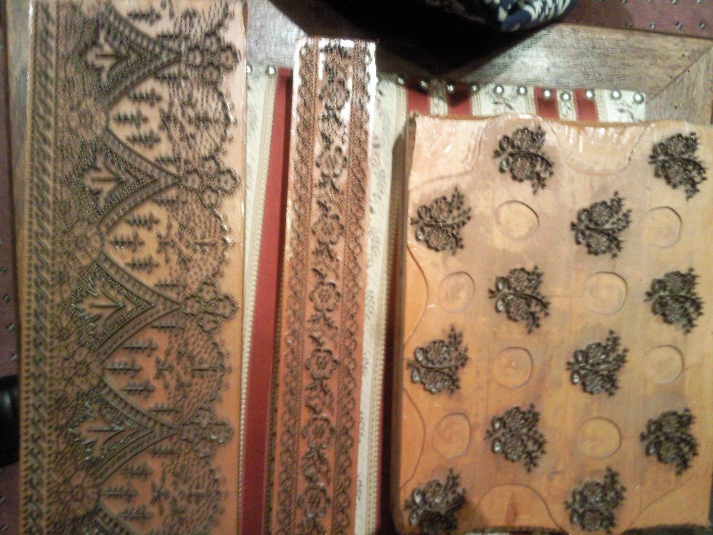 Es werden historische und moderne Druckstöcken gezeigt, sowie große Mustertücher gezeigt.